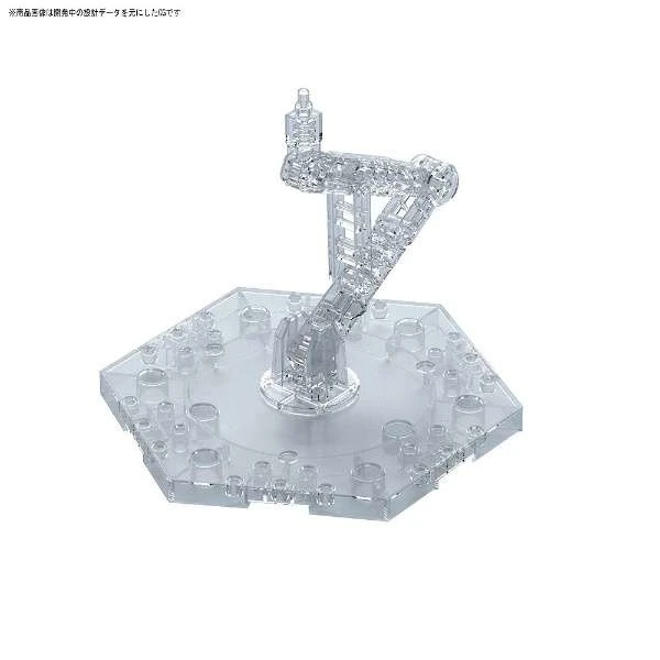 A new type of action base for 1/144 models that comes with unobtrusive base arms and can display all kinds of poses, including standing and action poses, the Action Base 5 includes a long base arm and 1 base. Sub-arms can be used to hold weapons and other accessories. Compatible with Figure-rise effect parts and Action Base 4 to connect multiple stands together like a chain!