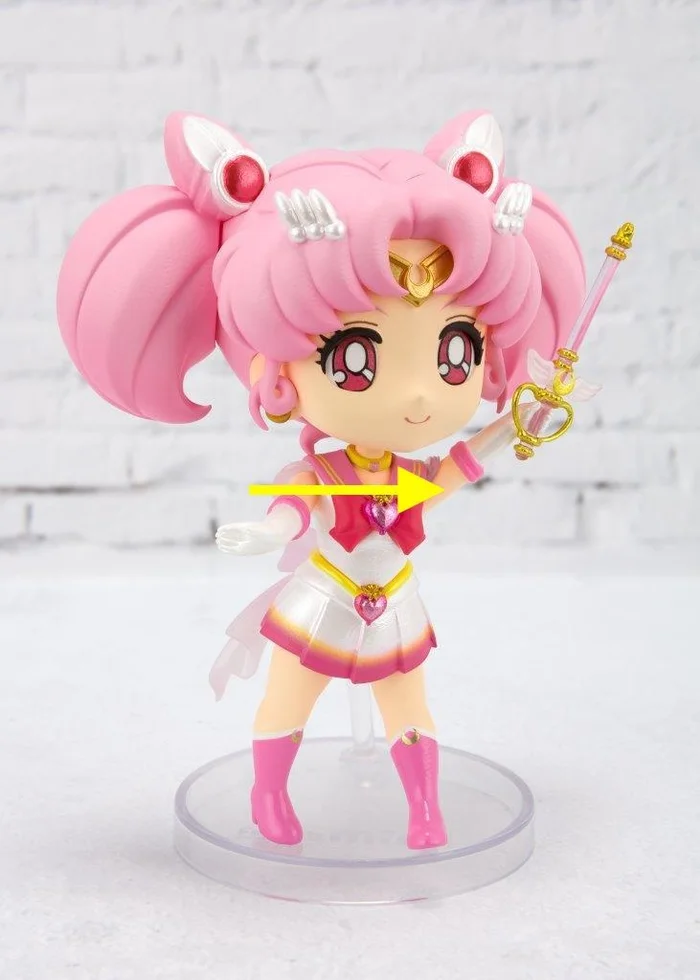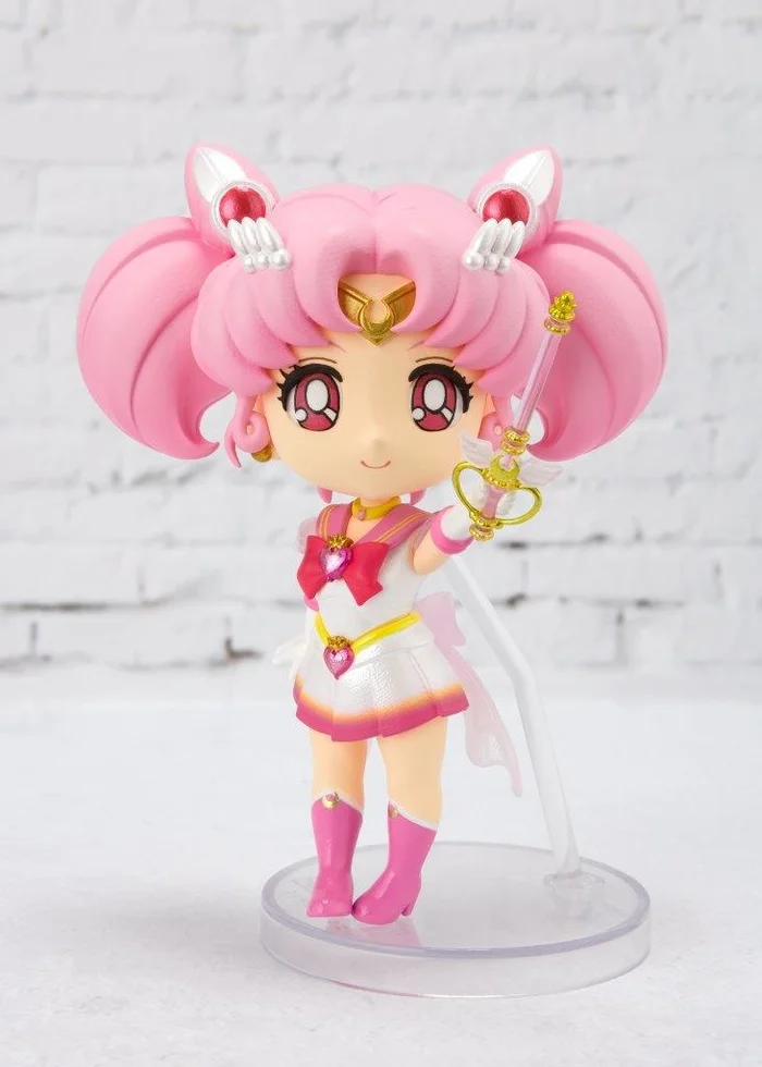 From Bandai comes this Figuarts Mini figure of Super Sailor Chibi Moon (Eternal Edition) from Sailor Moon Eternal. Despite her petite size of 3.1”, she is highly detailed and even comes with an alternate hand holding her Moon Kaleidoscope. The paintwork of rich pinks, pearlescent whites, and metallic gold has been completed cleanly and precisely. Transparent pieces including the wings on her Moon Kaleidoscope and her back bow add a special touch. Freely pose her arms, legs, and head to your liking. Let her bring magic and cuteness to your collection! Perfect for display with Super Sailor Moon Eternal Edition (sold separately).