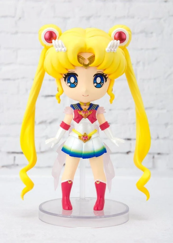 From Bandai comes this Figuarts Mini figure of Super Sailor Moon (Eternal Edition) from Sailor Moon Eternal. Despite her petite size of 3.5”, she is highly detailed and even comes with an alternate hand holding her Moon Kaleidoscope. The paintwork of rich blue, vivid magenta, pearlescent white, and metallic gold has been completely cleanly and precisely. Transparent pieces including the wings on her Moon Kaleidoscope and her back bow add a special touch. Freely pose her arms, legs, and head to your liking. Let her bring magic and cuteness to your collection! Perfect for display with Super Sailor Chibi Moon Eternal Edition (sold separately).
