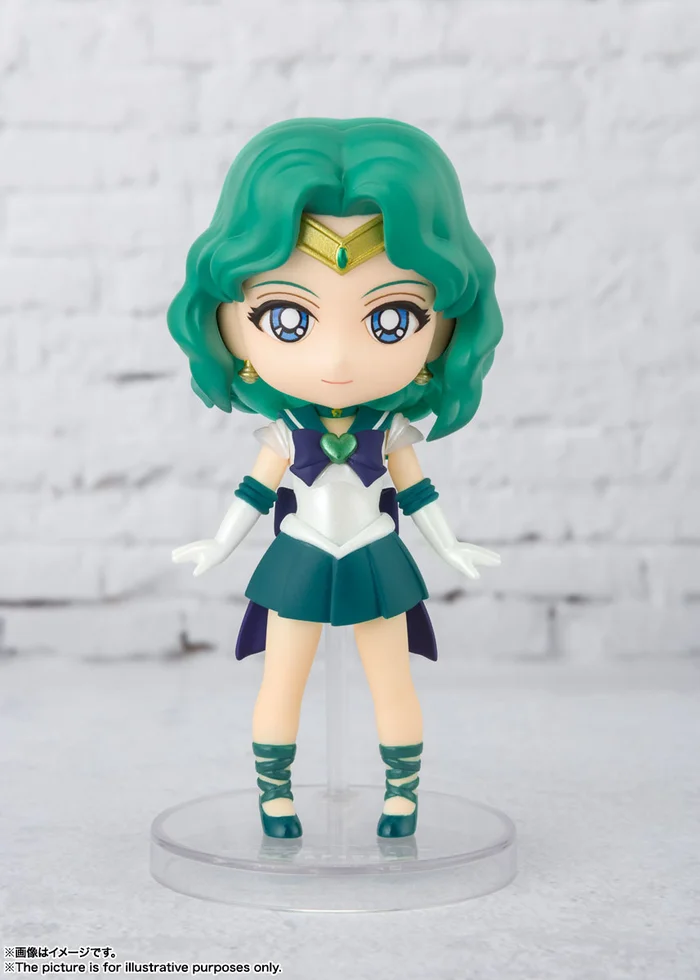 From Bandai’s Figuarts Mini series of collectible, stylized, palm-sized figures with expressive eyes and simple posability comes the Soldier of the Sea, Super Sailor Neptune, from the upcoming animated film Pretty Guardian Sailor Moon Eternal! Standing an easy-to-display 3.5″ tall, she wears her familiar Sailor Soldier uniform and features cute chibi proportions. She also comes with optional parts including a hand holding her Deep Aqua Mirror so you can display her in different ways. Add her to your collection together with her fellow Sailor Soldiers!