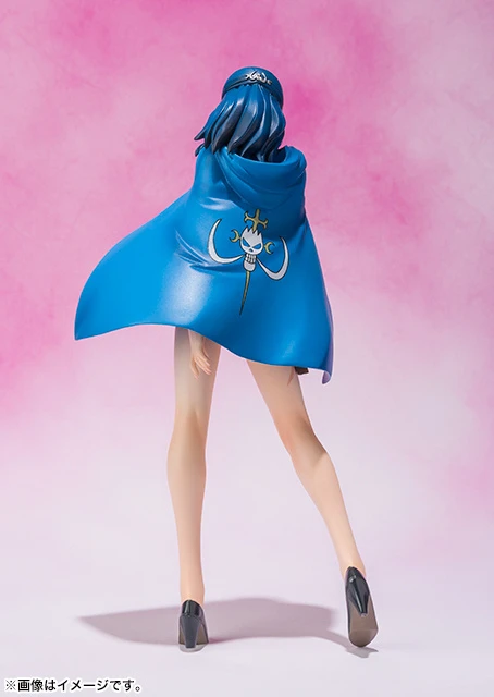 This highly detailed, non-articulated figure from Tamashii Nations’ Figuarts Zero lineup presents her in her outfit from the movie with her tiny black hotpants, tight blue shirt with white ruffles, black high heels, a holster on her thigh and her long blue cape with the Neo-Marine’s “Jolly Roger” on the back. Her cape is totally removeable too, and she also comes with a special knife accessory and custom display stand. Another fantastic addition to any One Piece collection, add this highly detailed statue to your collection today.