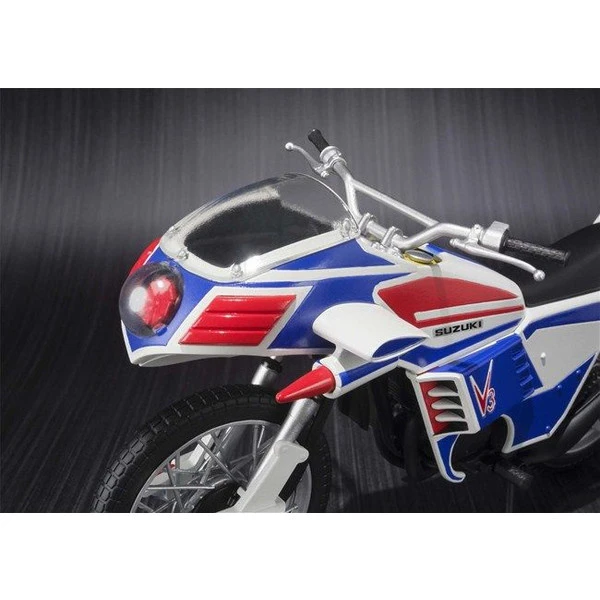 What’s a Rider without his bike? Hurricane is the iconic motorcycle ridden by Kamen Rider V3 – the third Rider in the iconic Kamen Rider franchise. Perfectly recreating the bike’s red, white and blue color scheme, the set also comes with a dedicated black wheel display stand, interchangeable handles, side wings and a joint for use with Tamashii Stage bases, but of course the coolest thing is if you also pick up the S.H.Figuarts Kamen Rider V3 action figure (sold separately) you can have him ride the Hurricane in true Kamen Rider fashion! Another excellent addition to any Kamen Rider or classic motorcycle collection, the Hurricane is sure to tear a hole through even the most experienced of collectors’ hearts.