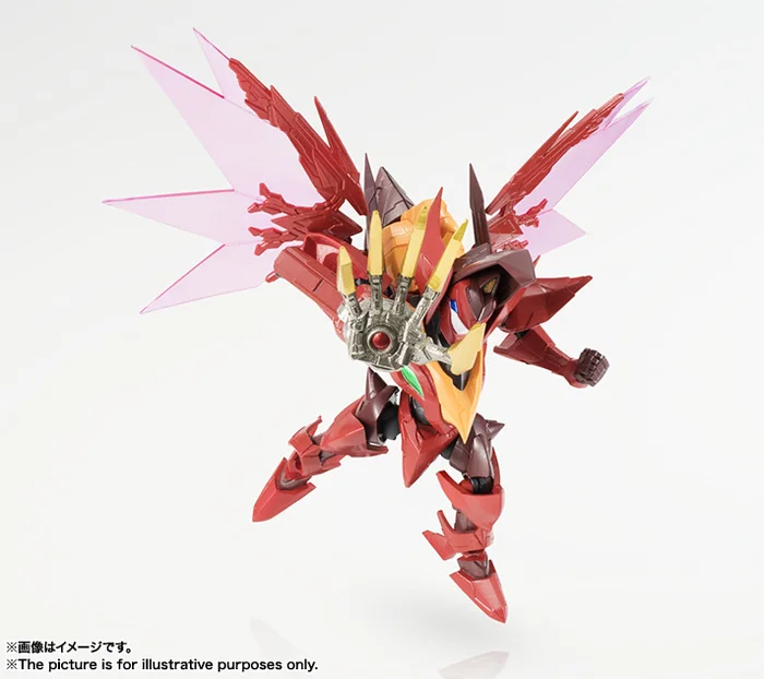 From the hit new brand NXEDGE STYLE comes the second addition to the Code Geass series line up: Guren S.E.I.T.E.N. Eight Elements, one of the most powerful frames from the story! Guren is portrayed with energy wings created using clear parts and its characteristic right hand is fully articulated with ball joints so you can pose his hand back to shoot radiant waves. Guren also comes with a Fork Knife that can be added to his hand. Set also comes with a NXEDGE stage.
