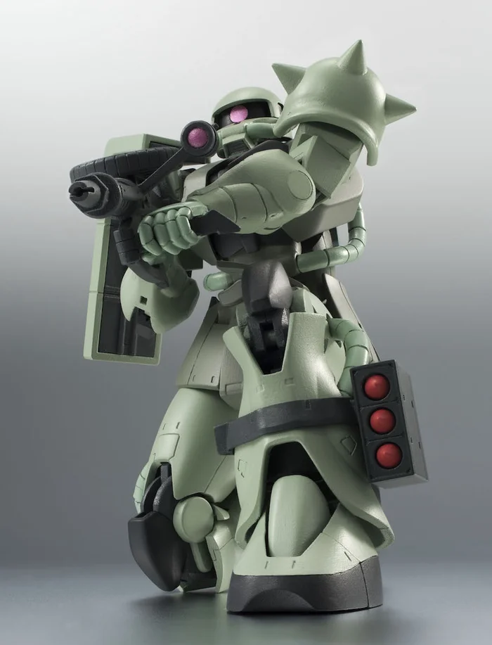 Bandaiâs Robot Spirits Ver. A.N.I.M.E. lineup is a celebration of 35 years of Gundam history that brings fans popular MS from the series recreated with unprecedented detail using the latest technology, and joining the lineup this time is the MS-06 Zaku II! One of the most mass-produced MS used during the One Year War, its look from the anime has been faithfully recreated, and it features separate front armor parts, giving it a wide range of articulation so you can easily display it in tons of action poses.