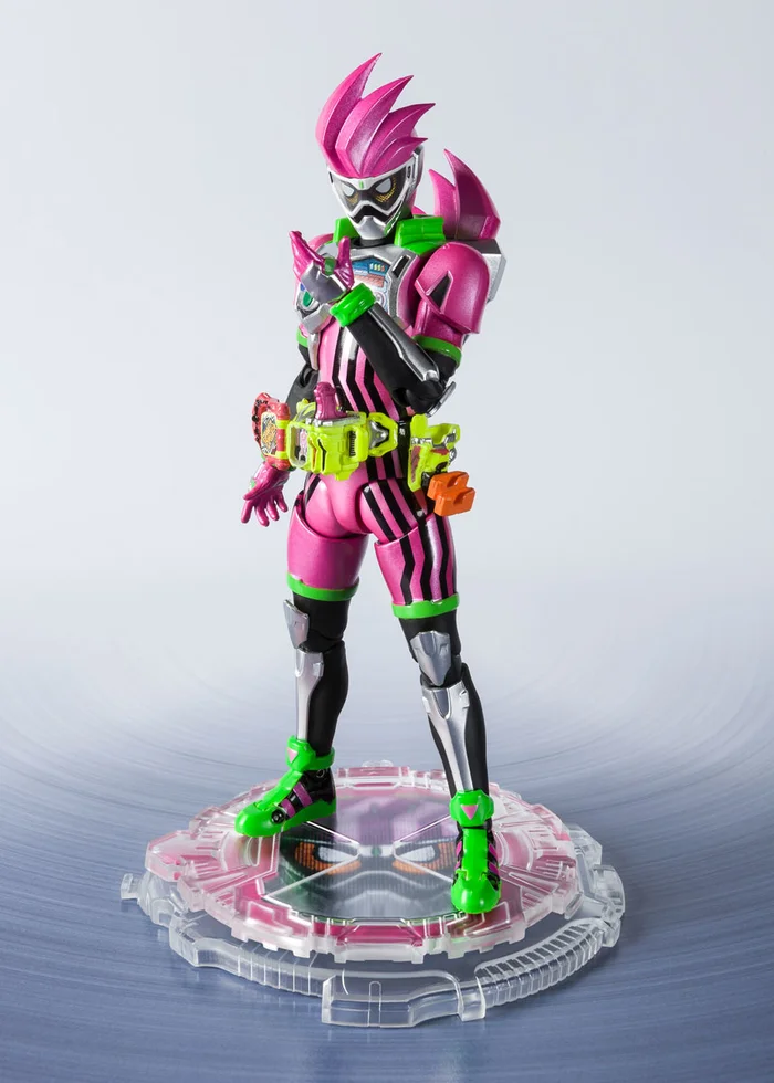 S.H.Figuarts’ Heisei Riders Rising Project Volume 01, -20 Kamen Rider Kicks Ver.-, has begun! Every figure includes a Ride Watch special display stand, and an individual sheet which perfectly matches the character! S.H.Figuarts Kamen Rider EX-Aid Mighty Action Gamer Level 2 -20 Kamen Rider Kicks Ver.- also includes optional right and left hands (three each) and two Gashacon Breakers.