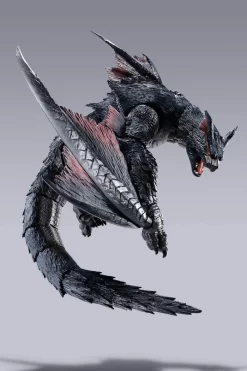 From the popular video game series Monster Hunter comes the feral and stealthy flying wyvern Nargacuga brought to life in the S.H.MonsterArts figure series! Overseen by director Kaname Fujioka, Nargacuga has been captured in realistic detail with its appearance from the series faithfully recreated in figure form. Incredibly detailed from the meticulous paintwork to the different textures used for its bladed wings, spiked tail, and black fur, it also comes with optional parts including a severed tail, angry tail, optional face part, and a hunter minifigure for recreating combat scenes. Add it to your collection!