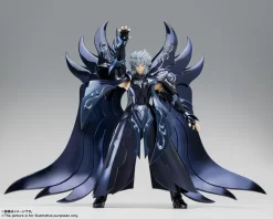 Introducing a new improved version of Thanatos from Saint Seiya The Hades Chapter: Elysion as part of Bandai’s Saint Cloth Myth EX figure series! Measuring 7.1″ tall, his intimidating look from the anime has been faithfully recreated using a mix of plastic and diecast parts for a high quality look and feel. He features the same body as his brother Hypnos, God of Sleep, and comes with his Cloth armor set, Object Mode frame, his harp, a mini figure of Pandora, and interchangeable head, hair, and hand parts so you can recreate your favorite memorable moments.