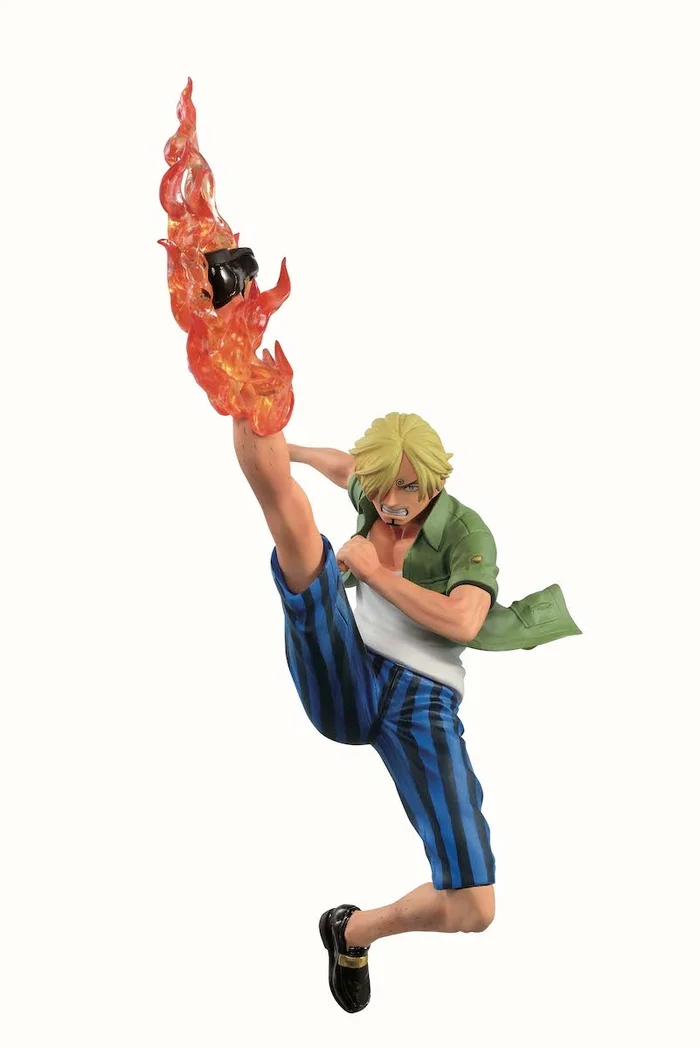 From Bandai’s Ichiban Figure line comes “Black Leg” Sanji from One Piece ready to bring the hurt! Measuring 5.5” tall, he leaps up in the air with a fierce expression on his face and his leg above his head with his foot aflame as he prepares to slam down for a mighty blow. Add him to your collection!
